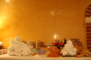 TADELAKT is yet another highly decorative finish which is currently experiencing an interest in the US. This waterproof plaster indigenous to Marocco is based on the same principles and materials as Marmorino and Cocciopesto but polished with a polished agate stone instead of a trowel. It can be used for wet environment surfaces such as showers, sinks and even bath tubs.