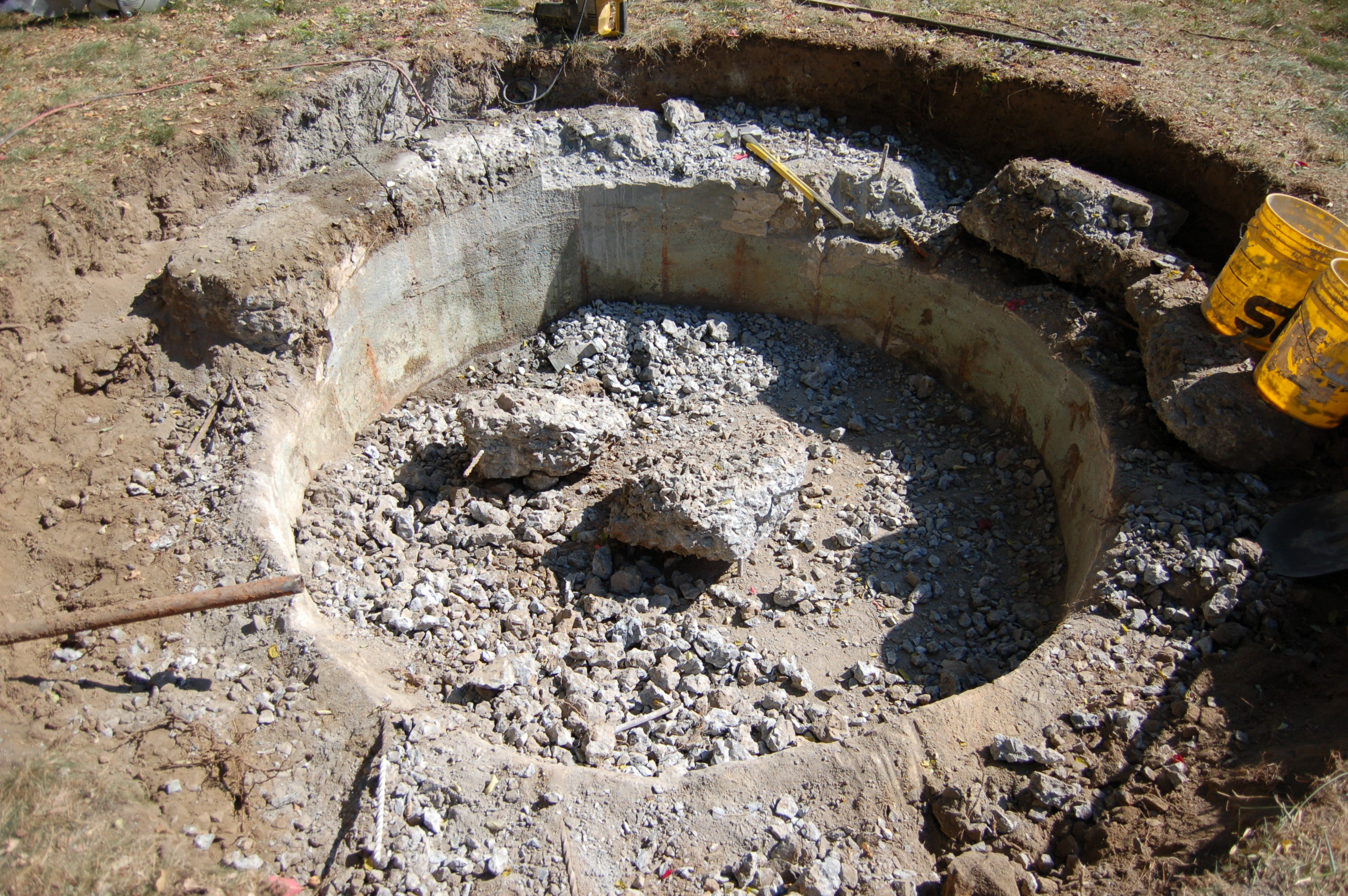 The pond concrete liner was heavily damaged. It was cracked all the way around at about half height and the concrete disintegated as the water and soil ate through it.