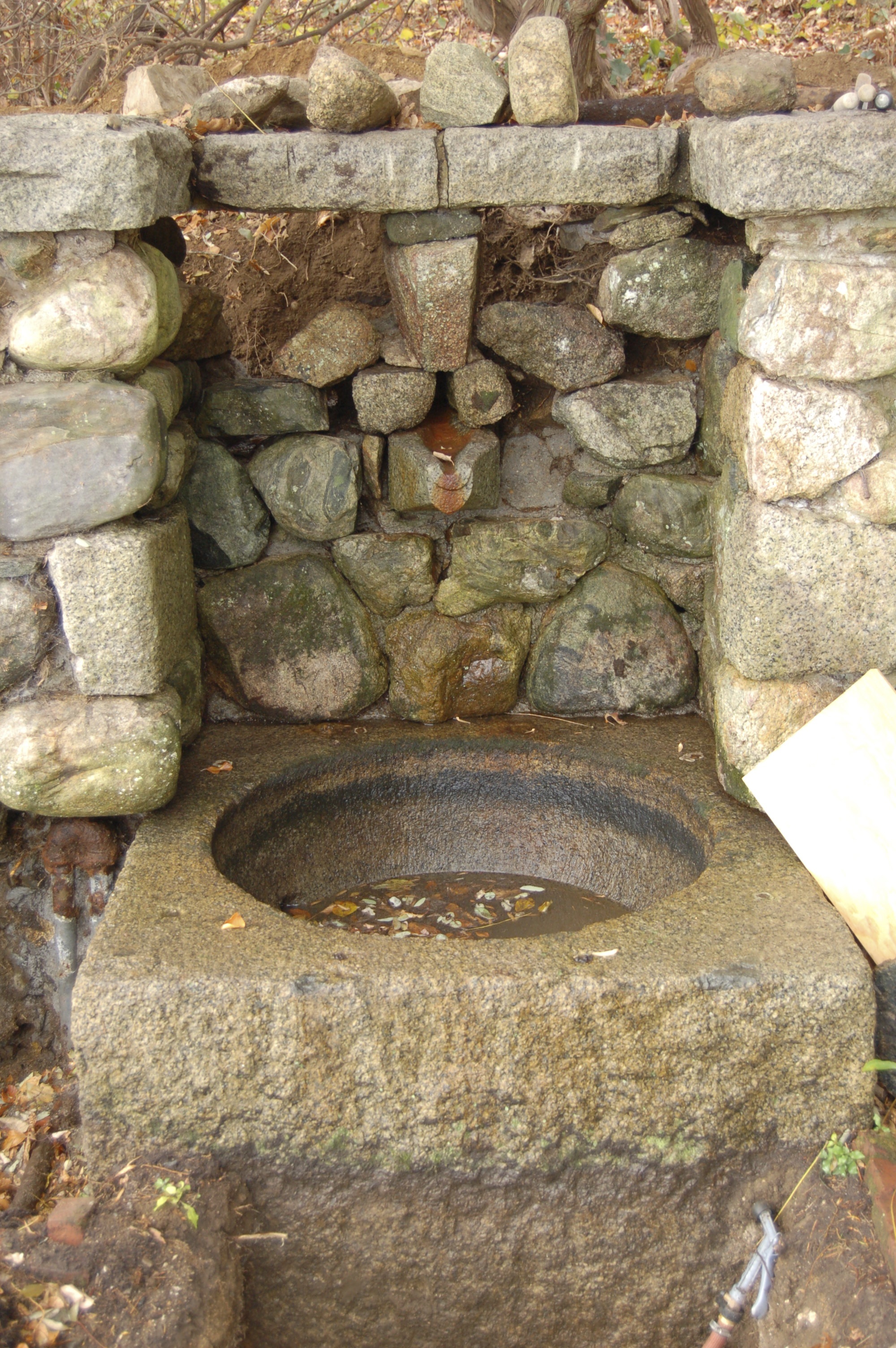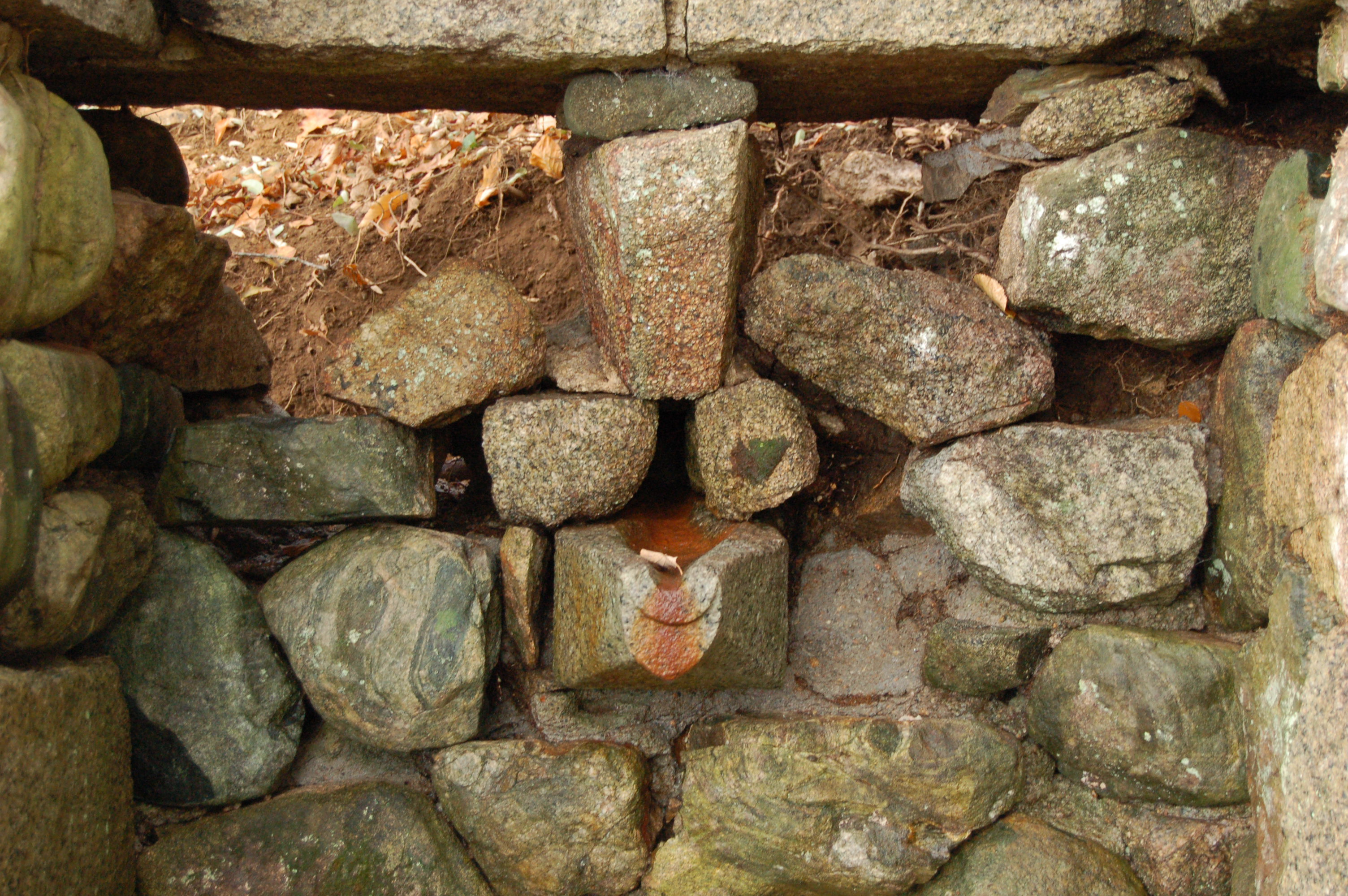 I carved out a slab of Cape Ann granite for the cover of the pump chamber, in style with the millstones in front of the two gate entrances.